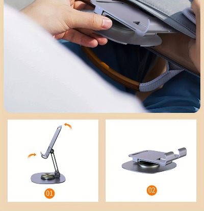 Aluminum Alloy Phone Stand - Waterproof, 360° Rotating Desk Mount with 2-Stage Adjustable & Foldable Design for Office and Bedstand Use